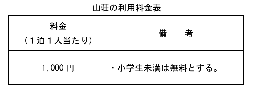 第7条 山荘を利用する者は、別表に定める利用料金を納入しなければならない。
