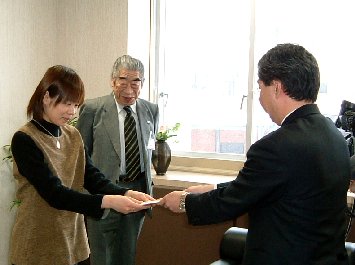 1月21日、大学内学長応接室にて、建築学科4年、スキージャンパーの葛西賀子さんに対し、同窓会より活動助成金として20万円を支給しました。