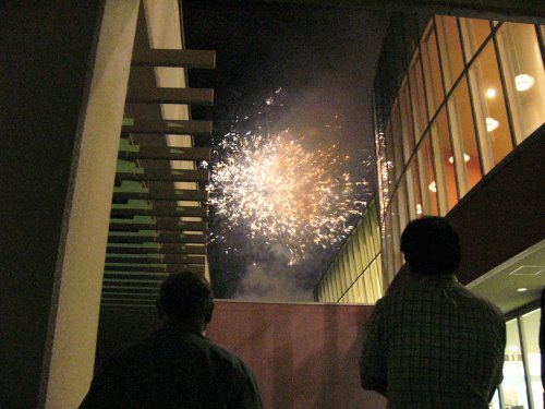 19:30より花火大会が始まり、参加者の方々は花火がよく見える会場横の庭へ移動し、観覧しておりました。