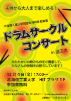 北海道工業大学同窓会地域貢献事業「ドラムサークルコンサート」を下記の通り開催します。