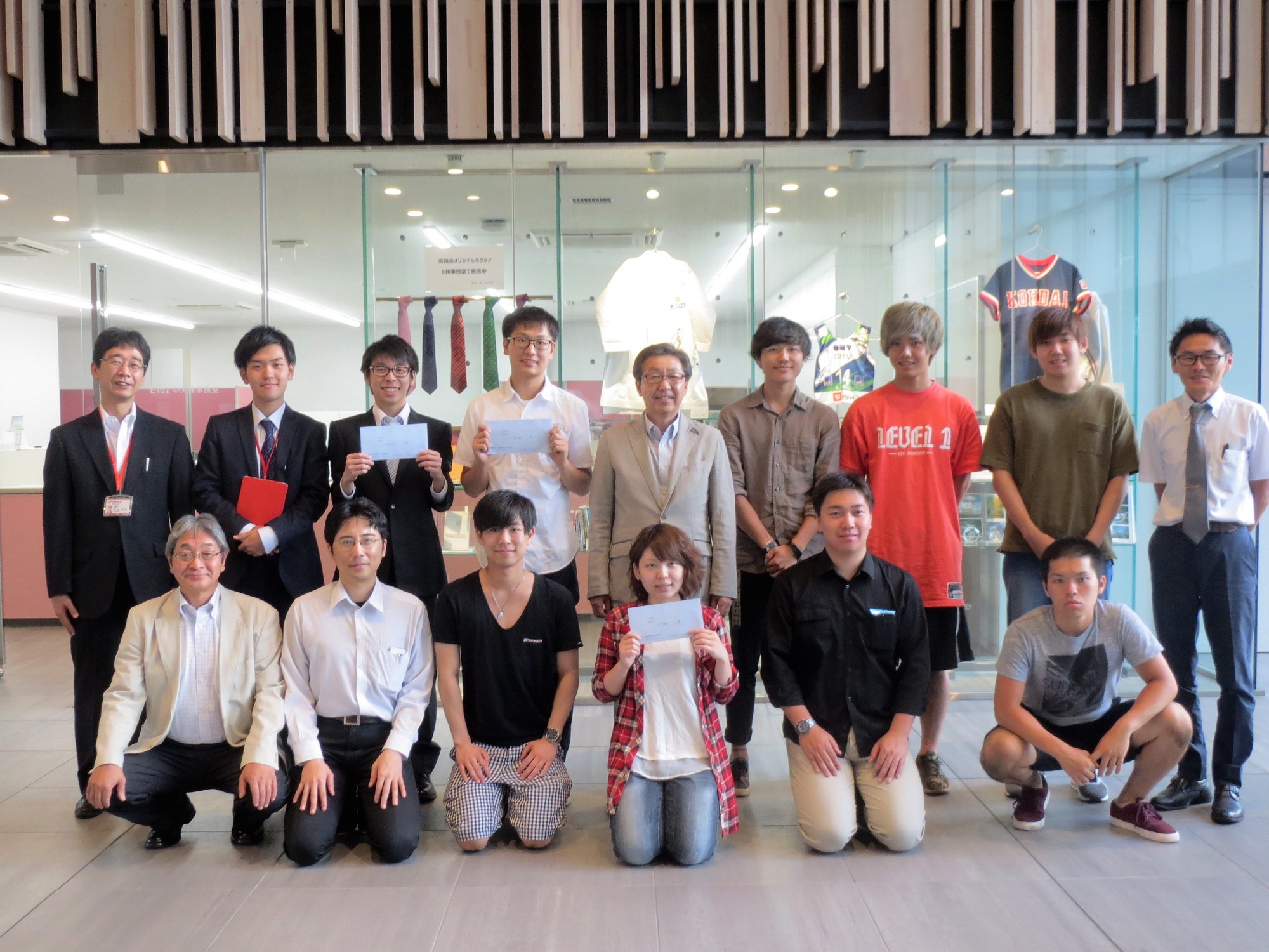 5月にお知らせし、6月末まで募集を行っておりました「学生活動助成」ですが、今年度は14の団体・個人から応募がありました。厳選に審議した結果、11の団体・個人に助成金が支給されることが決まり、本日E棟HUSプラザにて授与式が行われました。