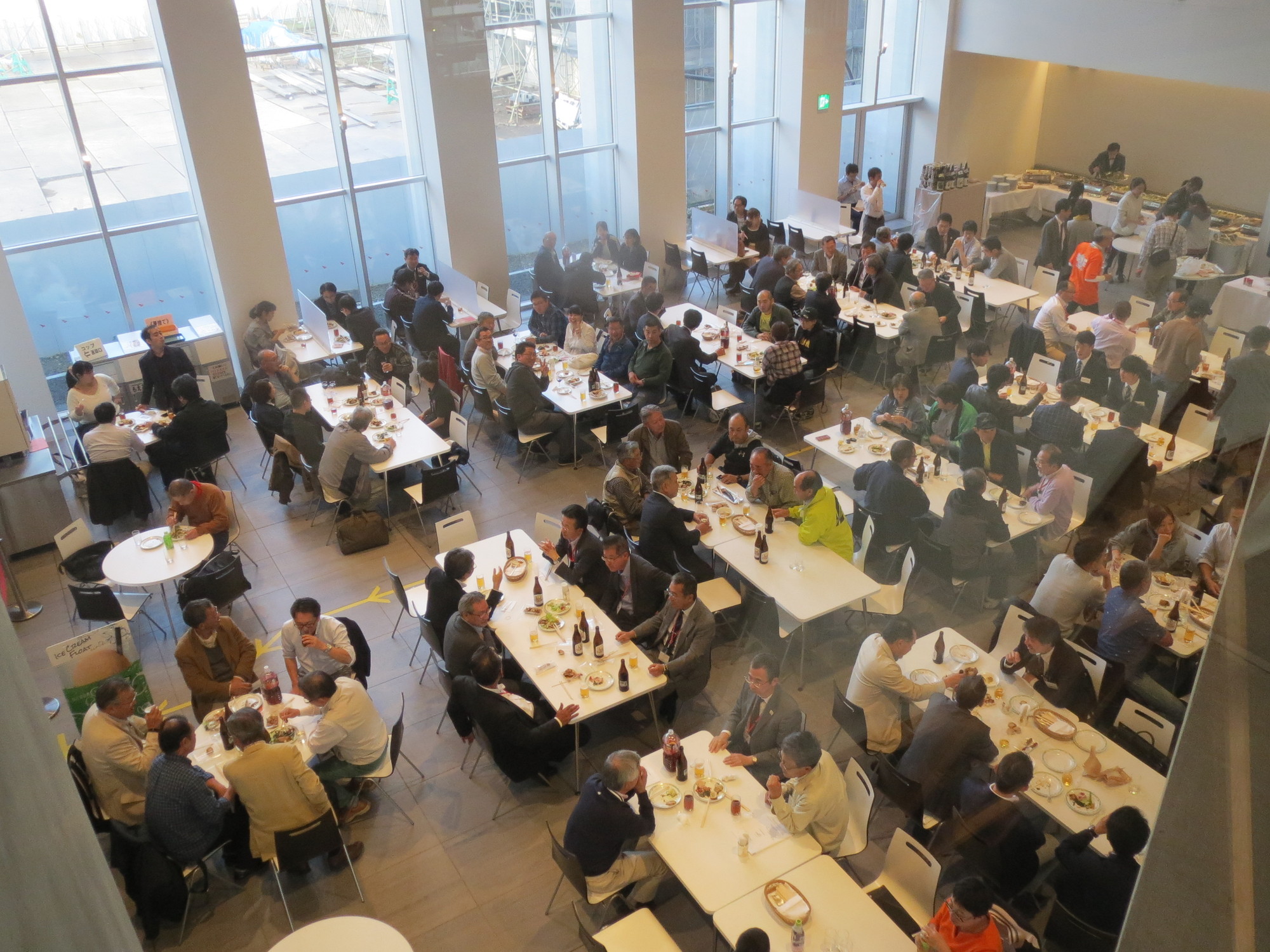 大学祭初日、16:00よりHUSプラザ1Fカフェテリアにて「同窓生交流会・ホームカミングデー」が開催されました。中央棟のお披露目も兼ねてケータリングを利用しての初の試みでしたが、例年通り100名を超える参加者のみなさまは、懐かしい顔ぶれに大いに盛り上がっていたご様子でした。