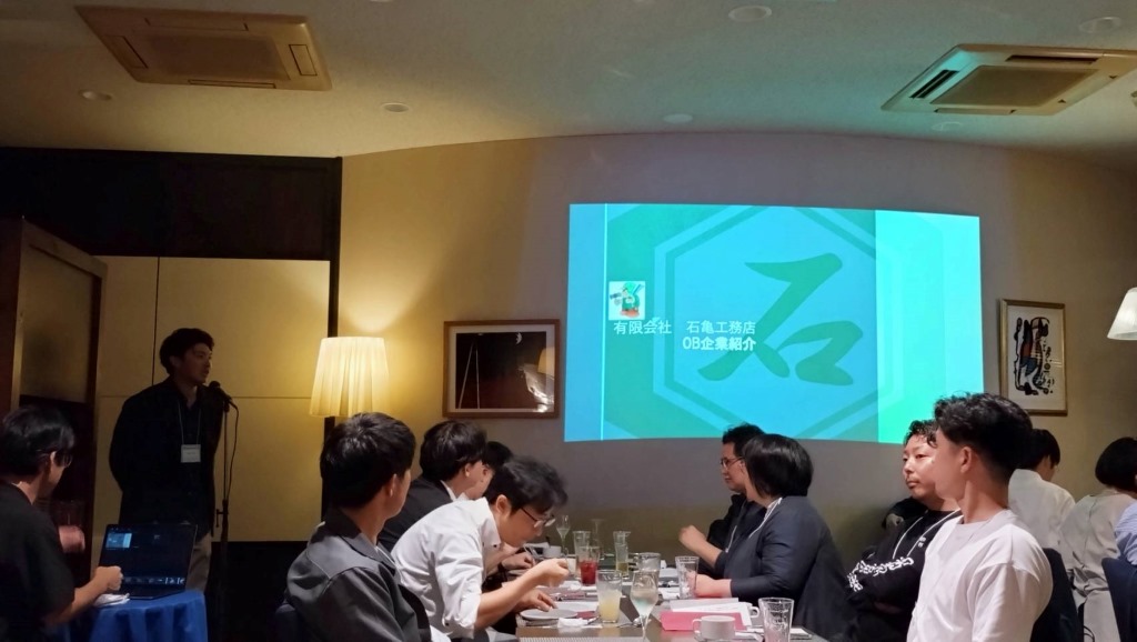 交流会では、第40期の石亀翔太氏(有限会社石亀工務店 代表取締役)による活動発表も行いました。